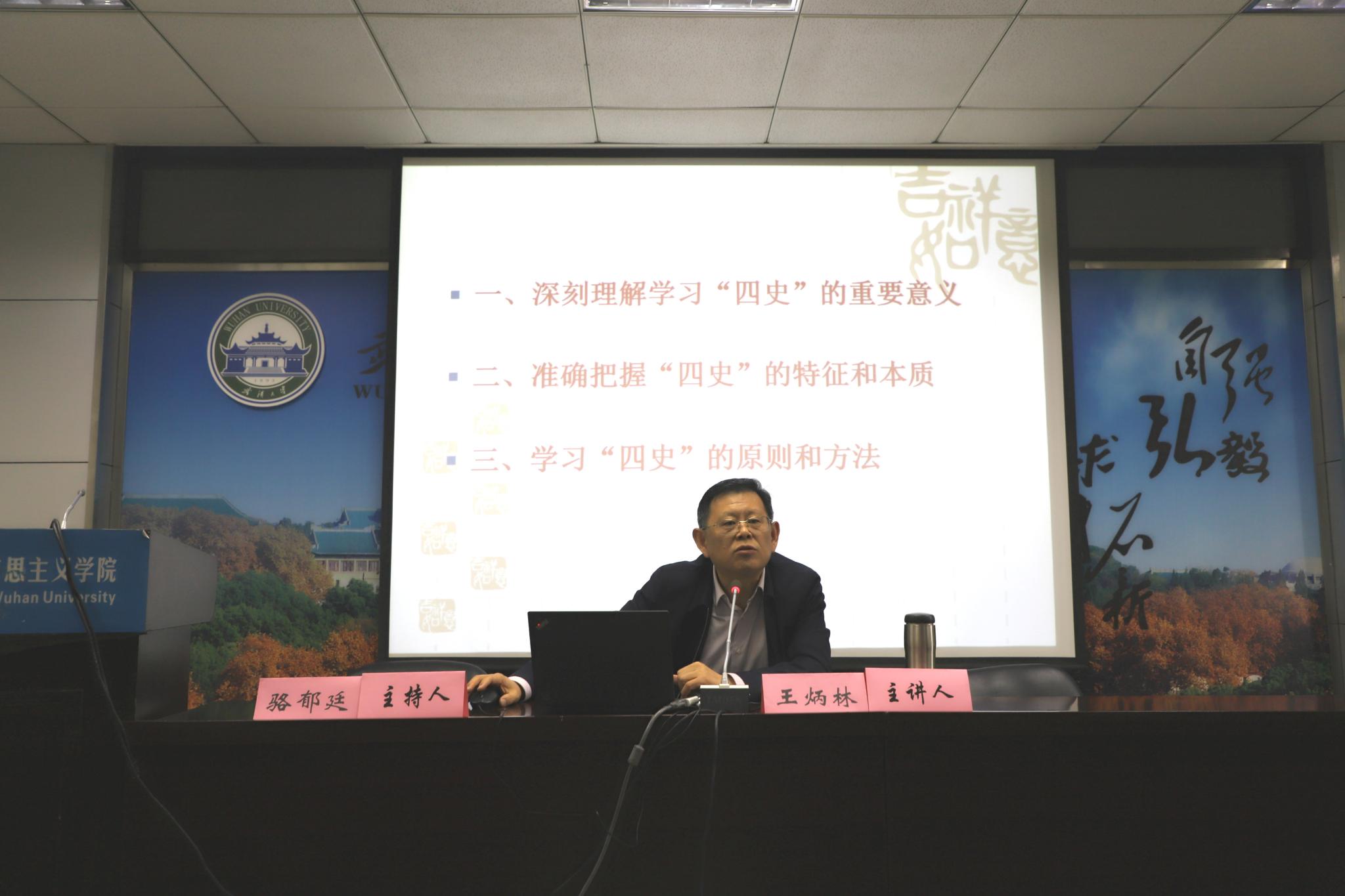 原党委副书记、马克思主义理论学科负责人骆郁廷教授、院党委书记谭玉敏、副院长杨礼银等教师以及部分访问学者、博士生、硕士生及本科生参加,报告由骆郁廷教授主持。