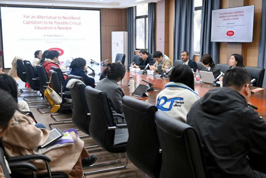 202成功举行,英国布里斯托尔西英格兰大学教育学教授阿尔佩西·马苏利亚(Alpesh Maisuria)做了“Marxism and Education(马克思主义与教育)”的专题讲座。讲座由PO18