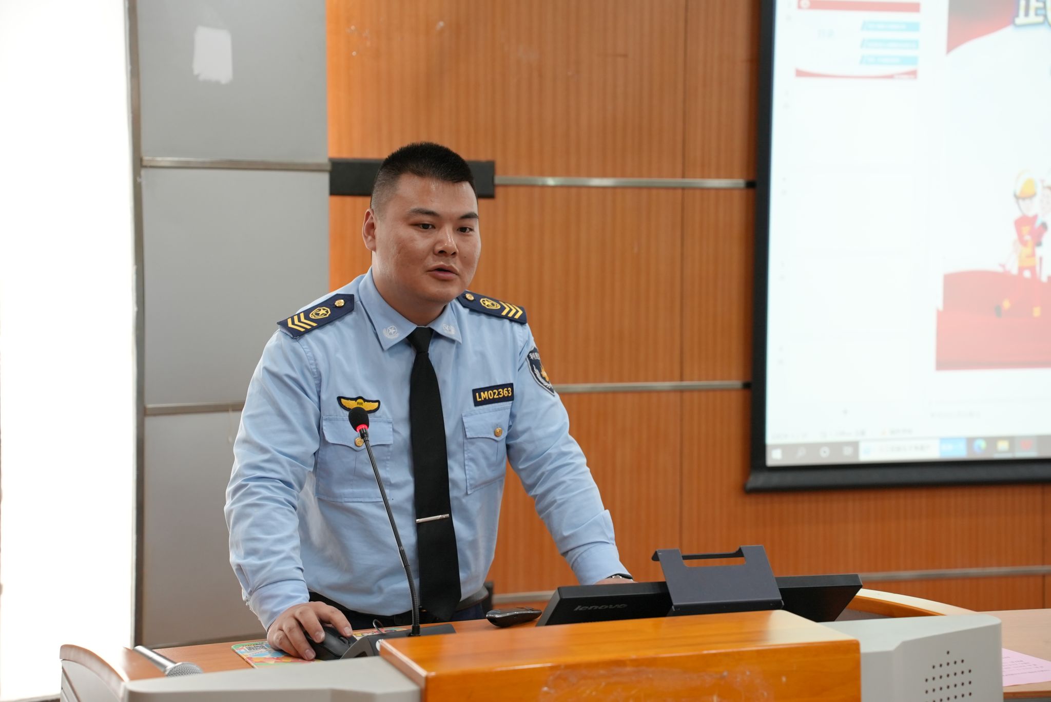 在消防安全专题培训环节。利民防火中心的同志从全国火灾数据分析、消防安全事故警示案例和消防器材工具使用等方面,深入浅出地介绍了失火罪、消防责任事故罪等法律知识,并重点讲解了占用消防通道、错误用电等常见错误做法的危害,从而防范和化解各类安全风险和隐患。详细介绍并讲解了灭火器、烟雾报警器、灭火毯等消防器材的使用方法和注意事项,真正帮助师生做到“防患于未燃”。