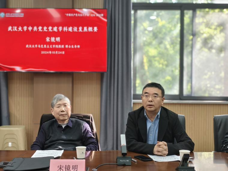 历史系、参与湖北地区党史调查为引,介绍了自己确立唯物史观的过程,启发大家做党史党建研究首要是树立正确的党史观。接下来,宋教授回顾了自己参与党史党建学科建设的教学科研经历,并将我校中共党史党建学科的发展历程总结为四个阶段:一是“中共党史学科建设的起步”阶段,他介绍了我校创办政治系、设置党史专业,成立党史教研室,扩充党史师资队伍以及参编党史讲义和湖北革命史资料的历程;二是“中共党史学科建设的曲折和重建”阶段,他讲述了特殊历史时期党史专业发展遭遇的曲折过程;三是“中共党史党建学科建设热潮的兴起”阶段,他着重回顾了改革开放新时期经过思想解放,我校党史党建学科教学改革取得的新成就、党史研究方向的聚焦过程、党史硕士学位点的设置、取得的系列学术成果、主办的重要学术研讨会以及党建研究方向的首创经历;四是“中共党史党建学科建设的发展”阶段,他总结了我校建设中共党史(含党的学说与党的建设)博士点、获批重大科研项目和横向课题、培养优秀人才、成立中共党史党建系的宝贵经验。