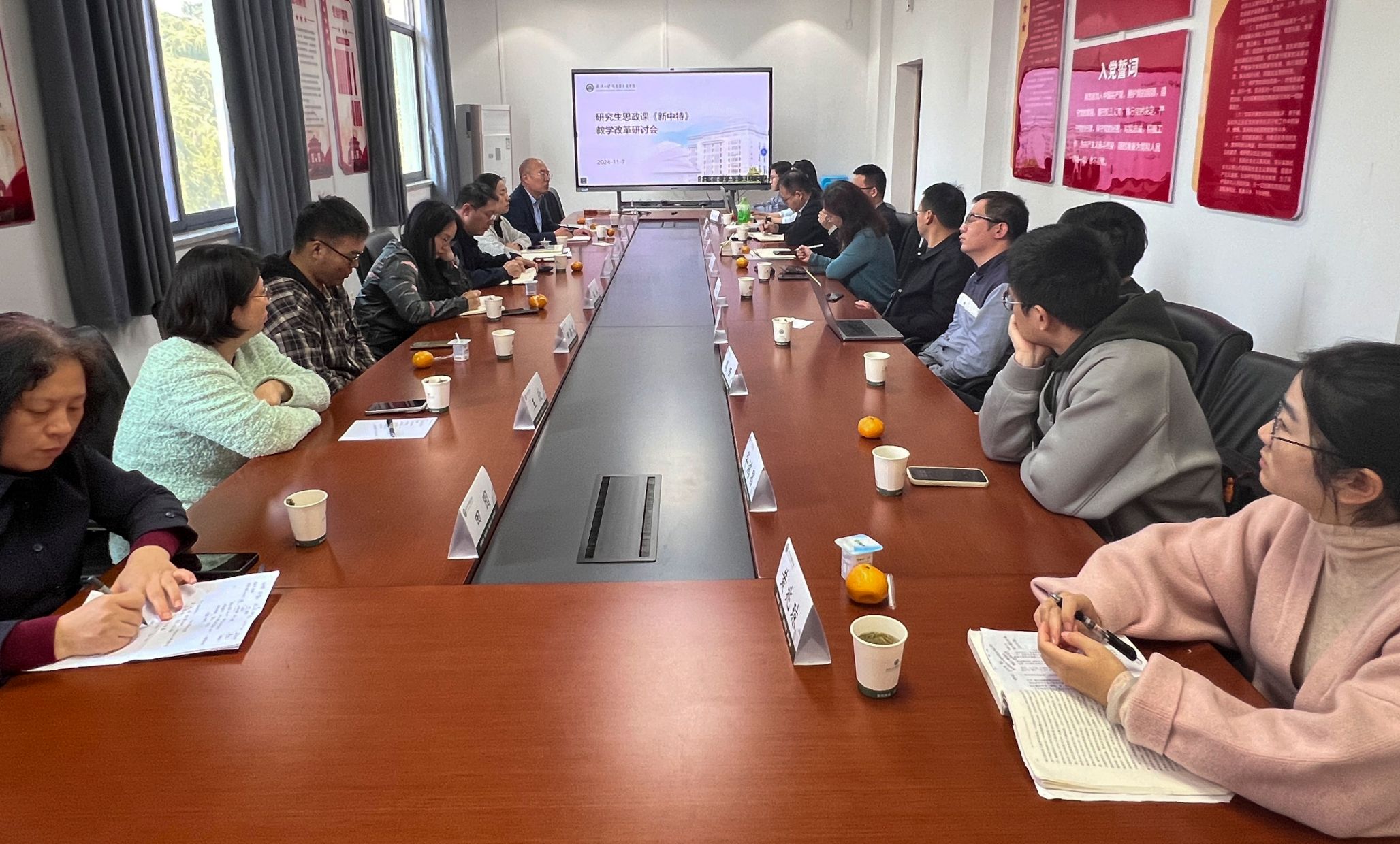 2024年11月7日中午,研究生思政课“新时代中国特色社会主义理论与实践”教学改革研讨会在学院326会议室举行,会议由PO18