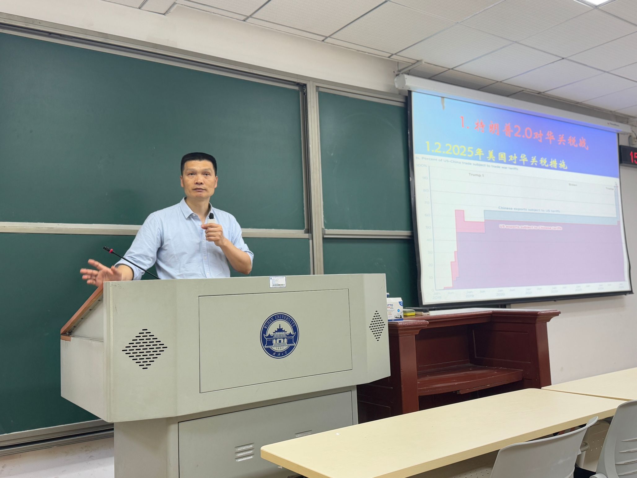 阮建平教授以《特朗普2.0对华关税与中国的应对思考》为主题展开阐述。他对比了美国2018年与2025年对华实施的一系列关税措施,指出特朗普政府2025年对华关税战的多重考量。针对这一复杂局势,阮建平教授提出了中国的应对思考。他认为,在面对美国关税战时,中国首先要思考斗争还是妥协的问题,同时要明确反制措施。在应对思路上,要以总体国家安全观为指导思想,坚守底线原则,并探索具体有效的应对途径。
