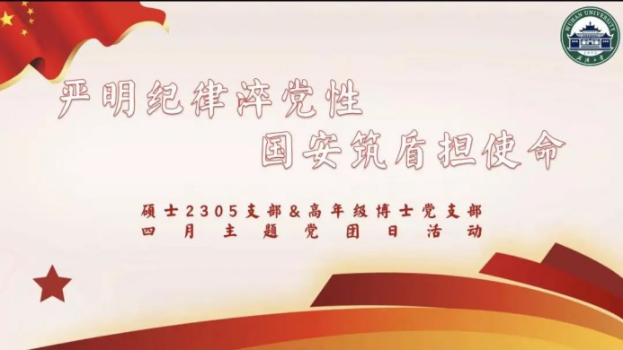 硕士2023级第五党支部与博士高年级党支部联合组织开展“严明纪律淬党性 国安筑盾担使命”主题党团日活动。本次活动以线上研学形式展开,通过专题宣讲、理论学习、团课青年说等环节,激发青年学子以纪律锤炼党性,以行动守护国安,展现新时代研究生的责任与担当。PO18
