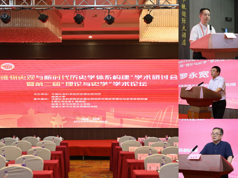 5月24日,研学师生集体参加了由中国社会科学院历史理论研究所和湘潭大学共同主办的“唯物史观与新时代历史学体系构建”学术研讨会暨第二届“理论与史学”学术论坛。来自国内多所高校的百余名专家学者围绕“唯物史观与历史理论研究”“新时代历史学理论前沿问题研究”“中国马克思主义史学研究”“中共党史党建研究”等议题展开了深入研讨和交流。杨明伟、罗永宽、宋俭分别以“把握唯物史观的几个根本出发点”“新时代抗战史学的新视域和抗战史观的新进展”“毛泽东对延安时期历史叙事形成的贡献”为题作了主旨发言。