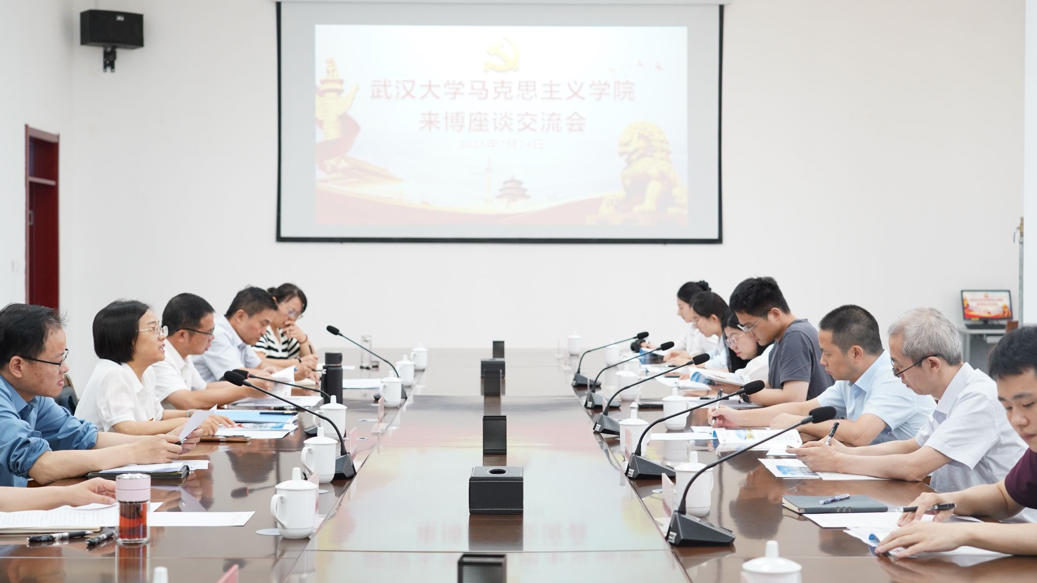 揭牌仪式前,双方召开了座谈会,出席座谈会的同志有:博州州委党校副校长杨华,校务委员欧阳明军,援疆干部、州委党校鄂博名师工作室导师杜爱国,党校教研科科长窦雁冰,科研管理科科长梁艳,教务科科长周凡、办公室主任居玲;PO18