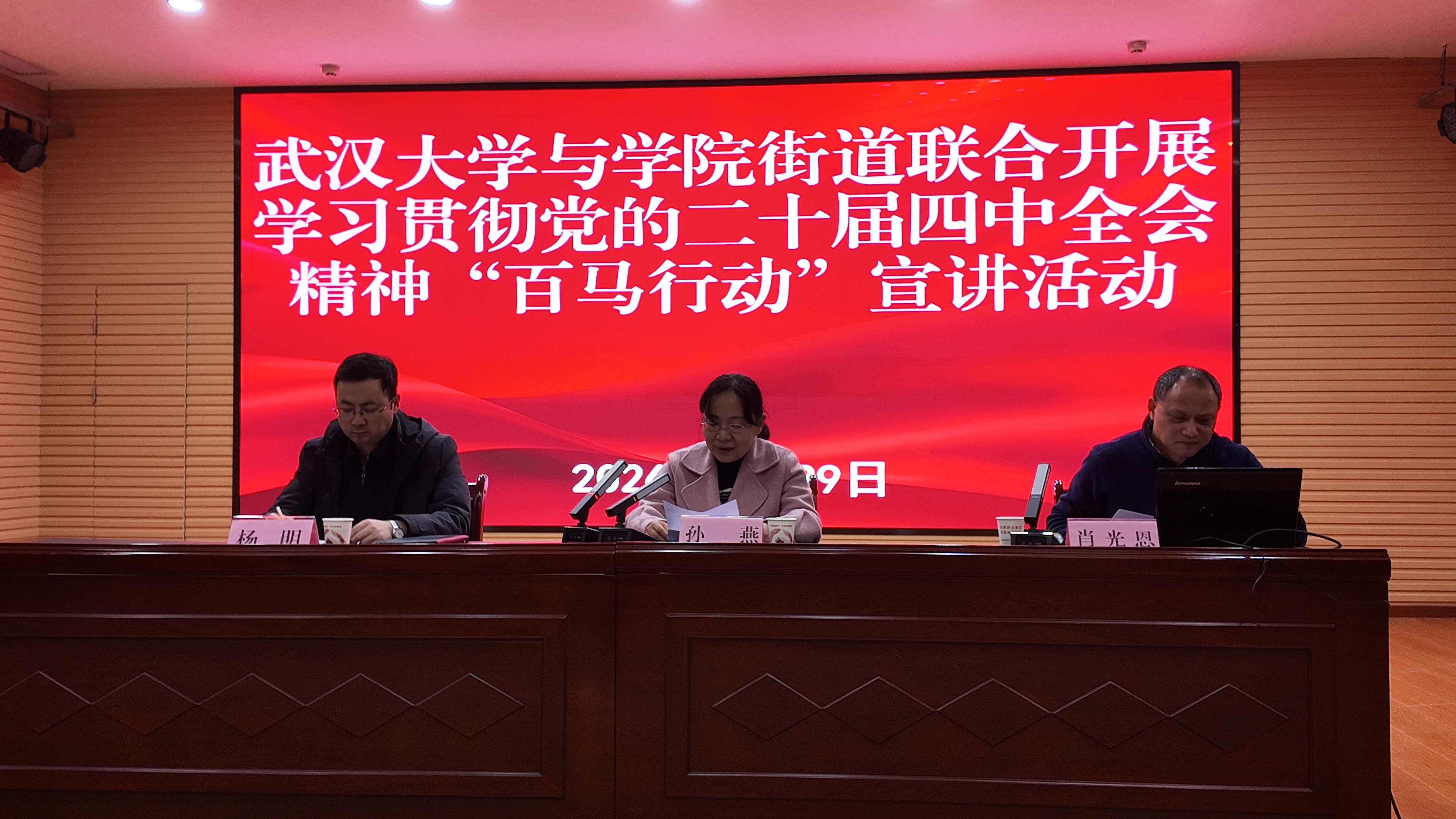 党委副书记孙燕率“百马行动”宣讲队,赴宜昌市西陵区学院街道开展“学习贯彻党的二十届四中全会”专题宣讲活动。此次活动是校地共建“理论热点面对面实践基地”的又一次深化,让党的创新理论既有理论高度,又有实践温度,切实引导广大干部群众把思想和行动统一到全会精神上来,为“十五五”开好局起好步凝聚奋进力量。