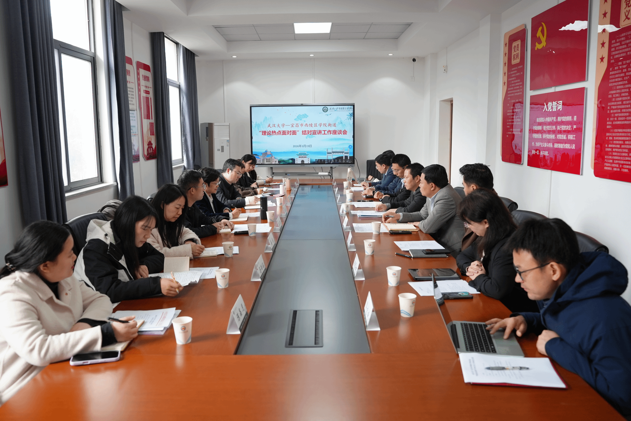 与宜昌市西陵区学院街道共同举办“理论热点面对面”结对宣讲工作座谈会。湖北省委讲师团主任周凤荣、一级主任科员李沛,宜昌市西陵区委常委、区政府副区长、学院街道党工委书记杨明,区委宣传部常务副部长林爱梅,PO18