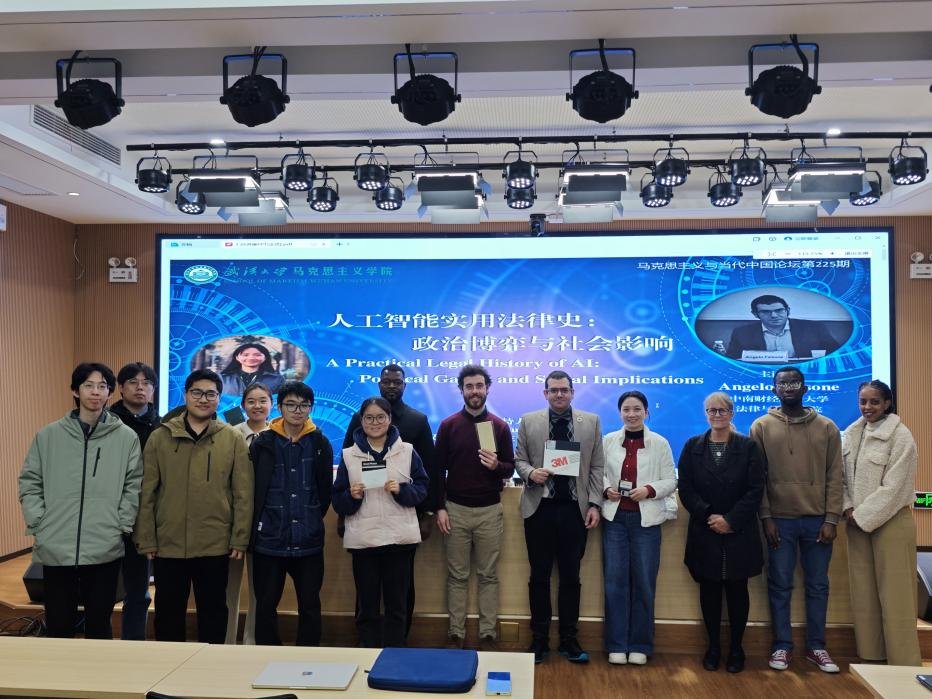 “马克思主义与当代中国论坛”第二百二十五讲“人工智能实用法律史:政治博弈与社会影响”在学院报告厅成功举办。中南财经政法大学法律与经济学院讲师Angelo Falsone应邀作专题讲座,讲座由PO18