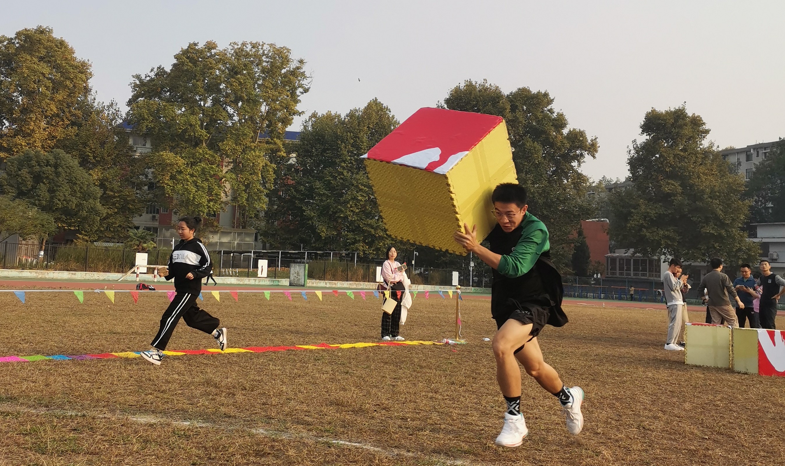 本次运动会设有拔河、薪火相传、爬雪山过草地、文字拼图、雷霆战鼓、奔跑的小巨人及水果大战共七个趣味比赛项目,均需团队协作完成,在提高大家运动热情的同时也有助于增强团队意识、增进师生情谊。