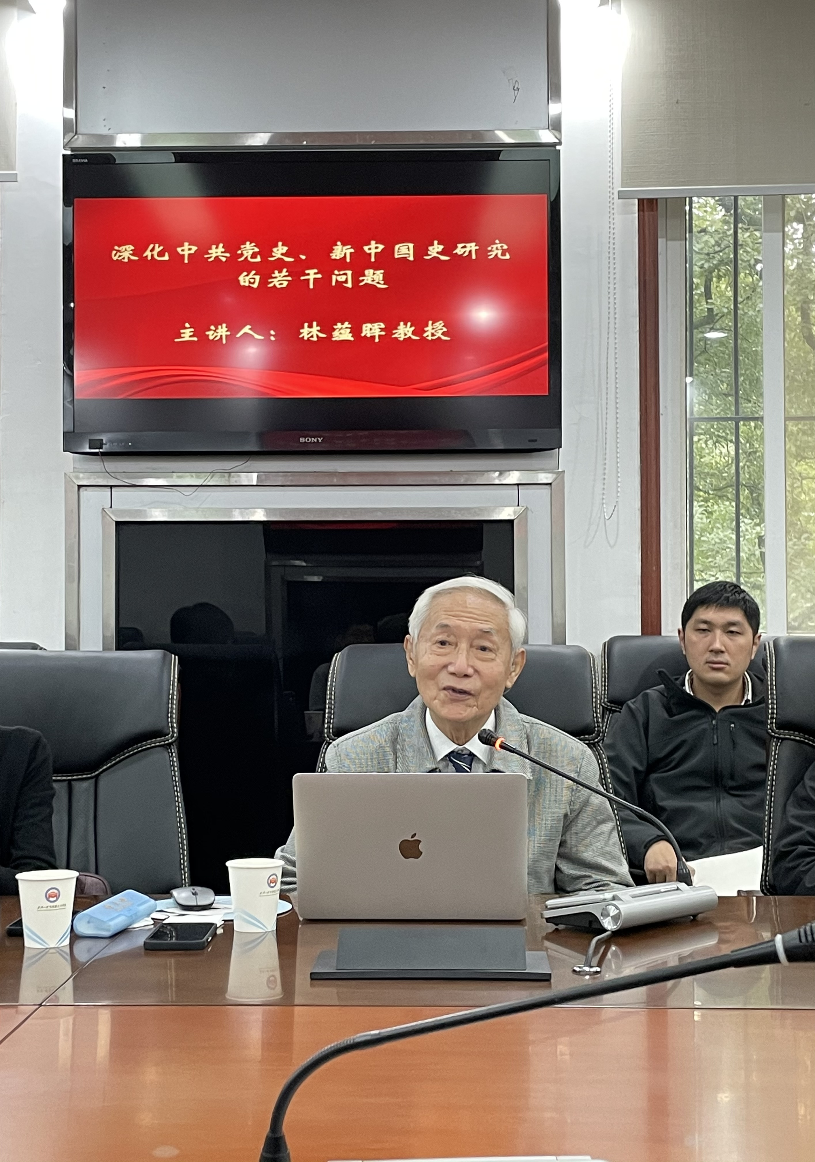10月16日上午,著名党史国史专家、原国防大学教授林蕴晖应邀在学院M218会议室,作了题为“深化中共党史、新中国史研究的若干问题”的学术讲座。讲座由PO18