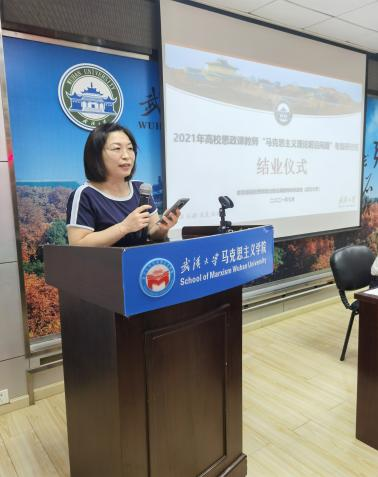 魏丽萍教授代表学员发言。她通过回顾培训期间的经历,分享了参加培训的心得体会,表示在培训期间不仅领略了专家风采,自身理论水平得到较大提升,而且对讲好思想政治理论课也有了更加深刻的认识。最后,出席仪式的领导为学员们颁发结业证书,祝贺学员们顺利结业。