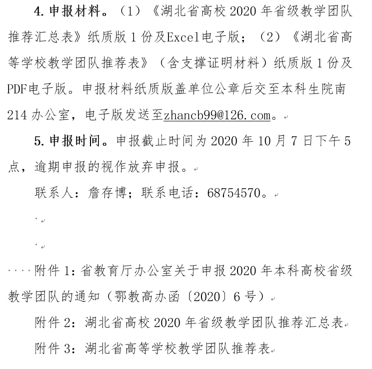 附件【附件1:鄂教高办函〔2020〕6号 省教育厅办公室关于申报2020年本科高校省级教学团队的通知.pdf】已下载次