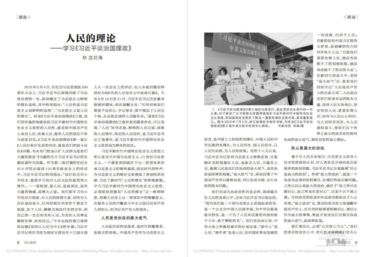 校党委副书记、PO18 沈壮海教授文章《人民的理论——学习〈习近平谈治国理政〉》由《红旗文稿》刊发。该文认为,学习习近平新时代中国特色社会主义思想,必须深刻把握其“人民的理论”这一鲜明特质、把握人民至上这一贯穿其中的精髓要义。以人民为党执政的最大底气,以民心为最大的政治,以造福人民为最大的政绩,以脱离群众为最大的危险,以服务人民为最大的幸福。在服务人民的不懈奋斗中全力践行好共产党人的初心、担当好共产党人的使命。