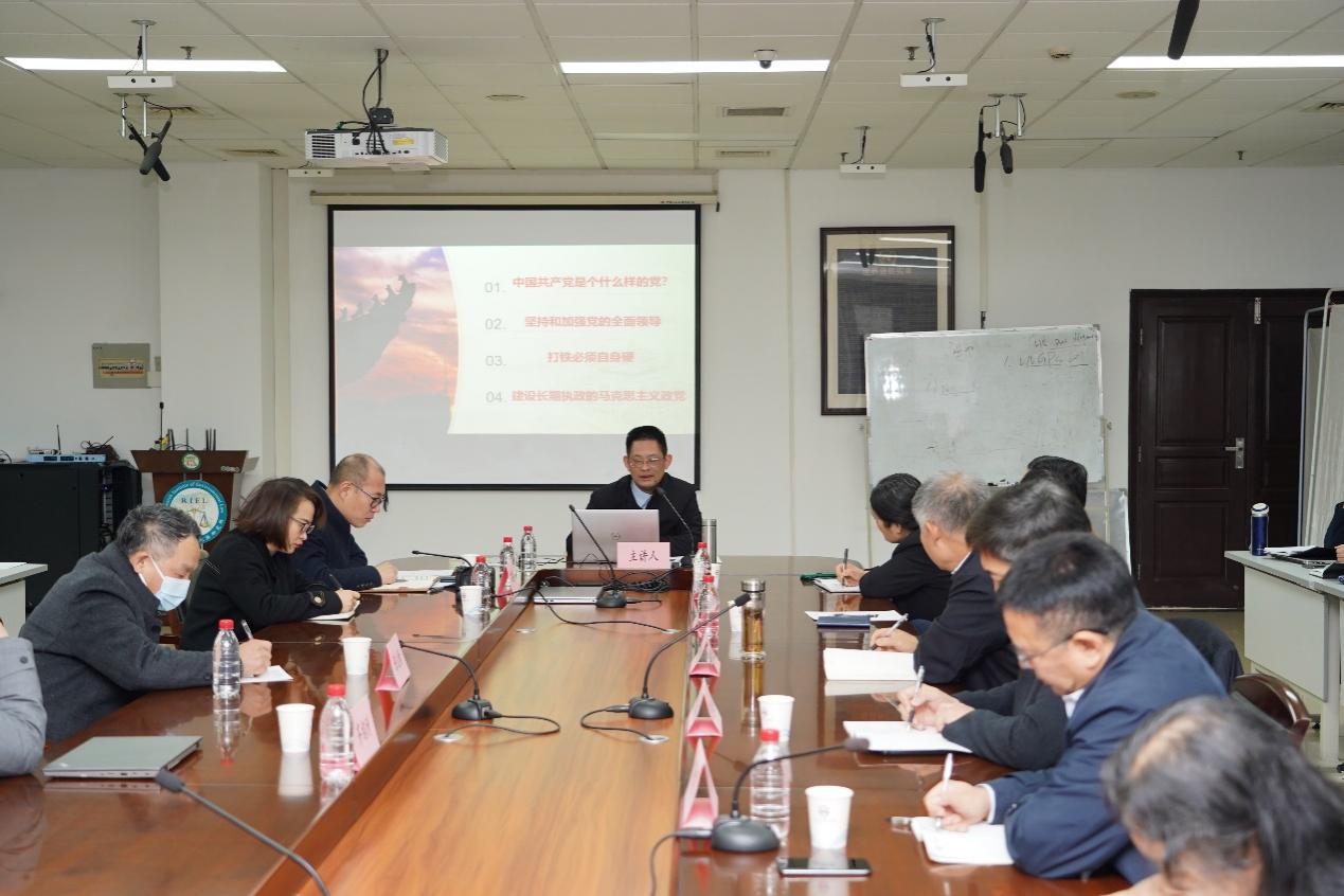 唐皇凤介绍了专题团队的备课情况,从中国共产党是个什么样的党、坚持和加强党的全面领导、全面从严治党永远在路上、建设长期执政的马克思主义政党四个方面阐述了教学内容。首席专家丁俊萍教授介绍了团队组成,提出专题教学要高度提炼、准确反映党的最新理论创新成果的同时,还要具有推广性与适用性。