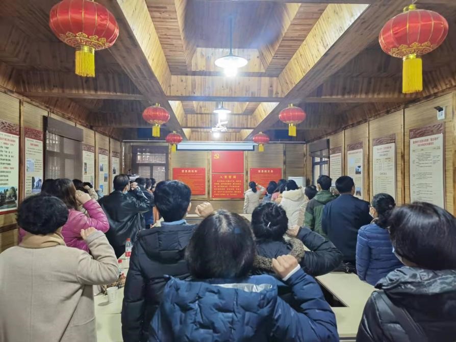 活动伊始,大家在会议室集体观看了小朱湾的宣传片,和童周岭村党支部纪检委员王万里进行热烈交流,详细了解了小朱湾的党建和经济发展等情况,并重温入党誓词。