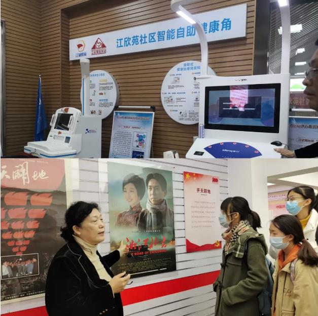 20211110日上午,课程主讲教师PO18 副院长唐皇凤教授、任艳副教授、梅立润老师和姜流博士一行四人,在区委组织部副部长李善华同志的陪同下,带领2020级本科生乘巴士来到江欣苑社区。全国劳动模范、江欣苑党委书记胡明荣同时以及社区志愿讲解员为同学们进行了精彩的现场讲解。